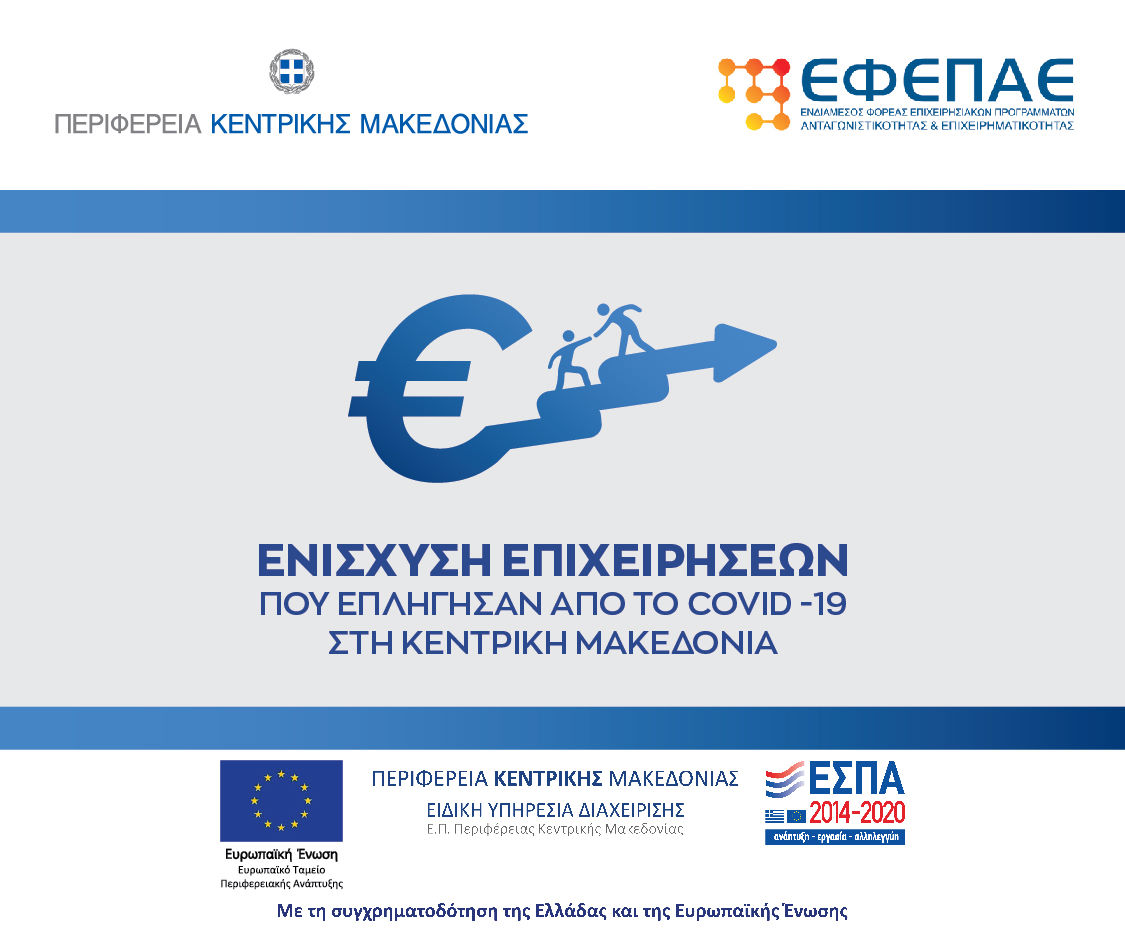 • ΠΡΟΓΡΑΜΜΑΤΑ Δράσεις ΕΠ-ΠΚΜ 2014-2020 Ενίσχυση μικρών και πολύ μικρών Επιχειρήσεων που επλήγησαν από τον Covid-19 στην Κεντρική Μακεδονία