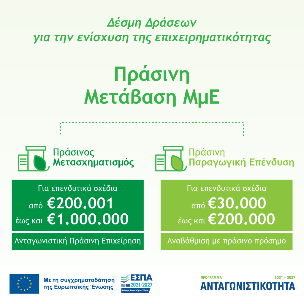 Πρώτη (1η) Τροποποίηση Αναλυτικών Προσκλήσεων της Δέσμης Δράσεων “Πράσινη Μετάβαση ΜμΕ”