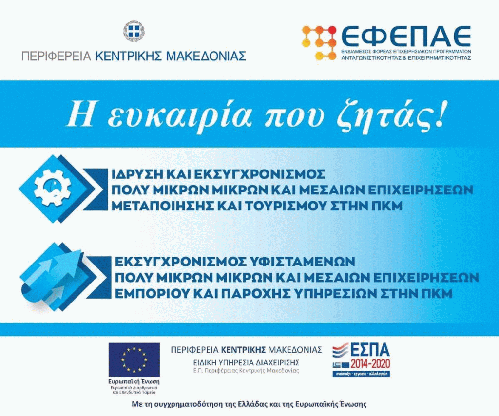 Στο πλαίσιο του σχεδιασμού σειράς ενημερωτικών εκδηλώσεων από την Περιφέρεια Κεντρικής Μακεδονίας και τον ΕΦΕΠΑΕ για την ενημέρωση των Μικρομεσαίων Επιχειρήσεων σχετικά με τις δράσεις […]