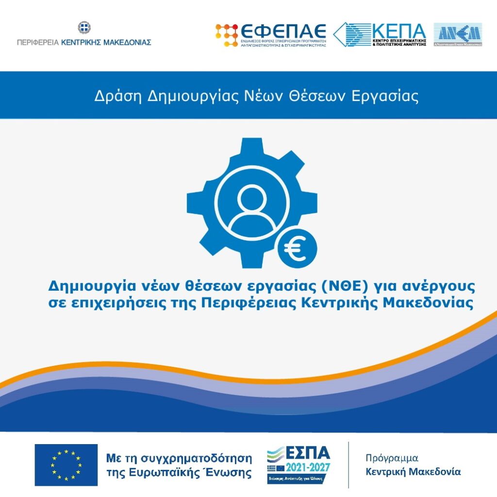 Συχνές Ερωτήσεις-Απαντήσεις για τη Δράση «Δημιουργία νέων θέσεων εργασίας (ΝΘΕ) για ανέργους σε επιχειρήσεις της Περιφέρειας Κεντρικής Μακεδονίας» του Προγράμματος «Κεντρική Μακεδονία» ΕΣΠΑ 2021 – 2027