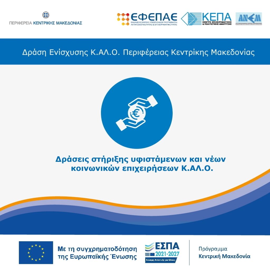 Προκήρυξη Δράσης στήριξης υφιστάμενων και νέων Κ.ΑΛ.Ο στο Πρόγραμμα “Κεντρική Μακεδονία”, ΕΣΠΑ 2021-2027
